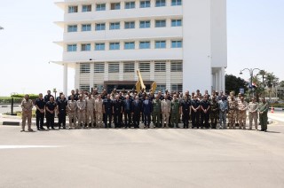 ثم أهدى الفريق أسامة ربيع درع الهيئة إلى اللواء أ.ح محمد محفوظ أمينو والذي بادر بدوره بإهداء درع معهد دراسات الحرب الجوية للفريق أسامة ربيع رئيس الهيئة.