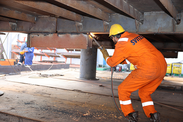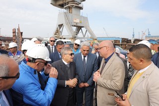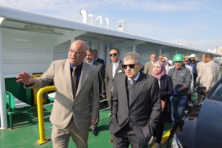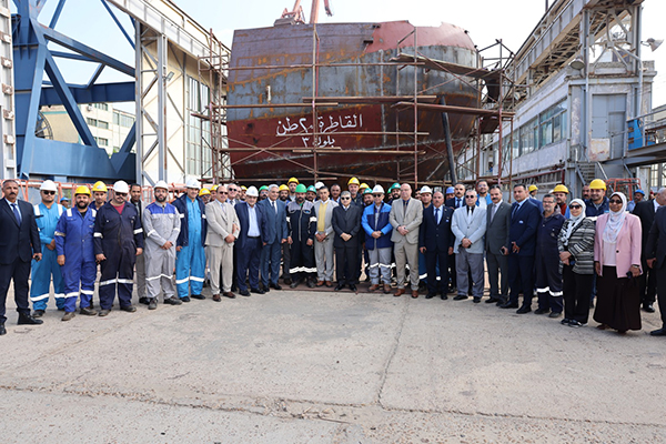 ثم تعرف رئيس الهيئة على مستجدات أعمال بناء قاطرة بقوة شد 20 طن لتلبية احتياجات الترسانة بنسبة إنجاز بلغت 30٪ بساحة الترسانة، بالإضافة إلى متابعة أعمال بناء معديتين ركاب حمولة 320 طن للمعدية الواحدة بنسبة إنجاز قدرها 40%  وذلك لخدمة حركة عبور المركبات والأفراد بين بورسعيد وبورفؤاد.