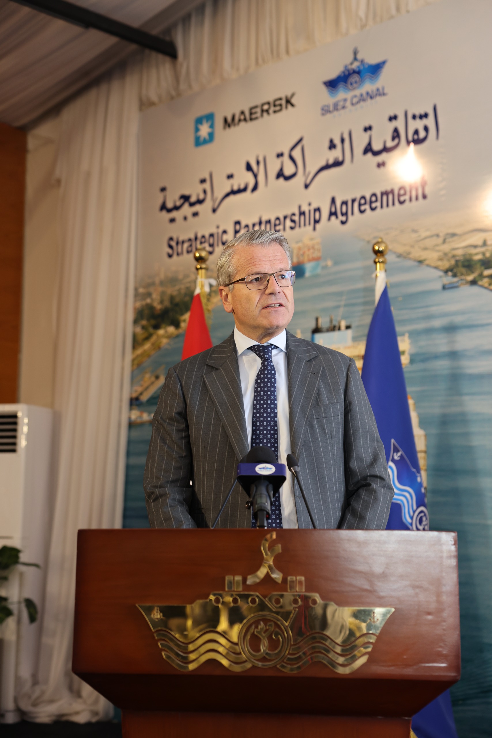 وأوضح أن قناة السويس لا تمثل ممر ملاحي هام فحسب لمجموعة ميرسك وإنما شريك استراتيجي في محطة الحاويات بشرق بورسعيد، موجها الشكر والتحية للسيد الرئيس عبد الفتاح السيسي رئيس الجمهورية على دعمه الكامل وحضوره احتفالية افتتاح عدد من المحطات البحرية بميناء شرق بورسعيد والذي مثل تتويجًا لجهود الشراكة وعمقها.