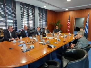حضر اللقاء، السيد فيرون فاسيلياديس رئيس مجموعة V المالكة لشركة Antipollution، ووفد رفيع المستوى من ترسانة ONEX ضم رئيس قسم اللوجيستيات و المدير المالي للترسانة اليونانية.